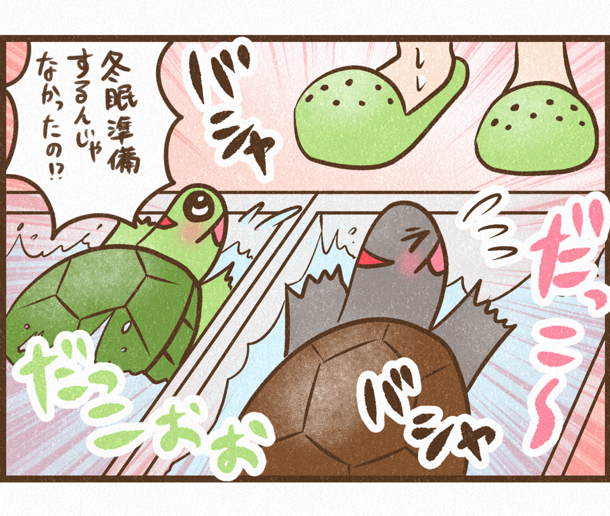※冬眠に慣れていない子や室内飼いの亀さんは冬眠させちゃいけません。体調を崩してしまいます。その子に合った生活スタイルを心がけてください!