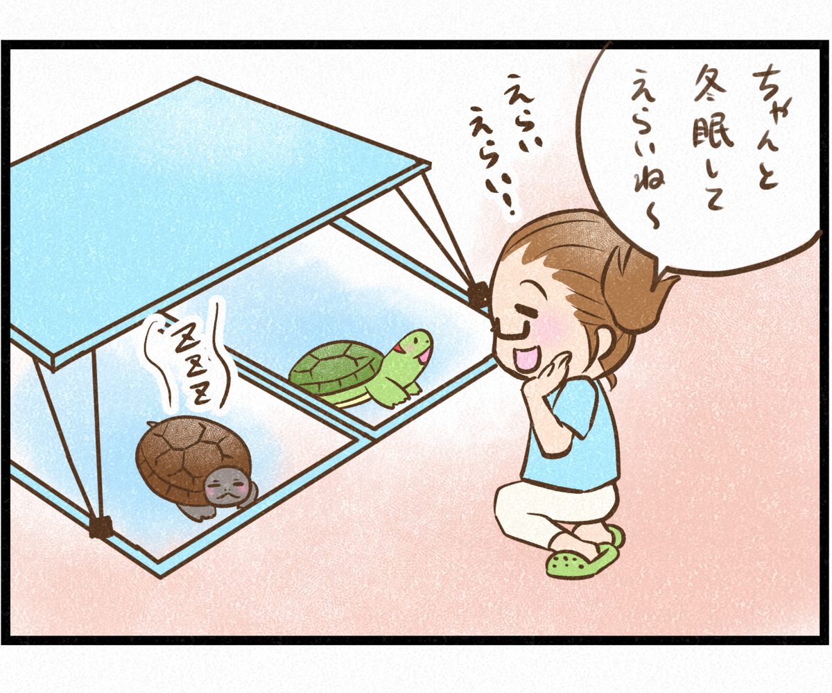 というか、カメ子ジュニア普段はちゃんと冬眠活動に入ってるのに、